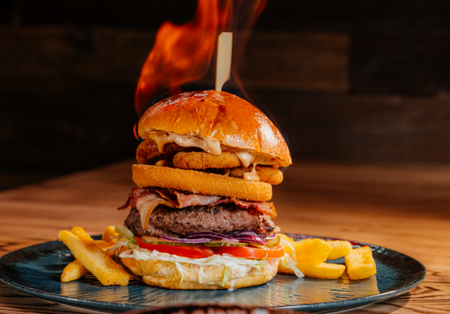 Ale Ogień to rzemieślnicza burgerownia i grill w Toruniu. Specjalizujemy się w burgerach ze świeżo mielonej wołowiny, soczystych stekach z grilla oraz żeberkach BBQ. Wszystkie dania przygotowujemy na miejscu, z wysokiej jakości składników, własnych sosów i świeżych bułek.