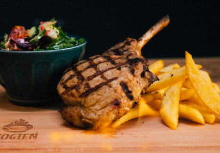 500g Tomahawk wieprzowy, frytki, sałatka, sos czosnkowy